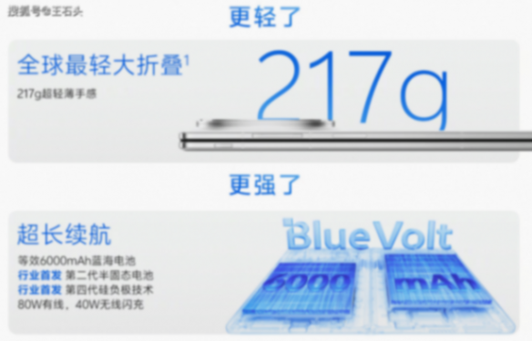 vivo也非常自信地表示,这是vivo推出的史上最强大折叠屏,并且手机厚度只有9.2mm,重量是217g,是行业内最轻大折叠屏。