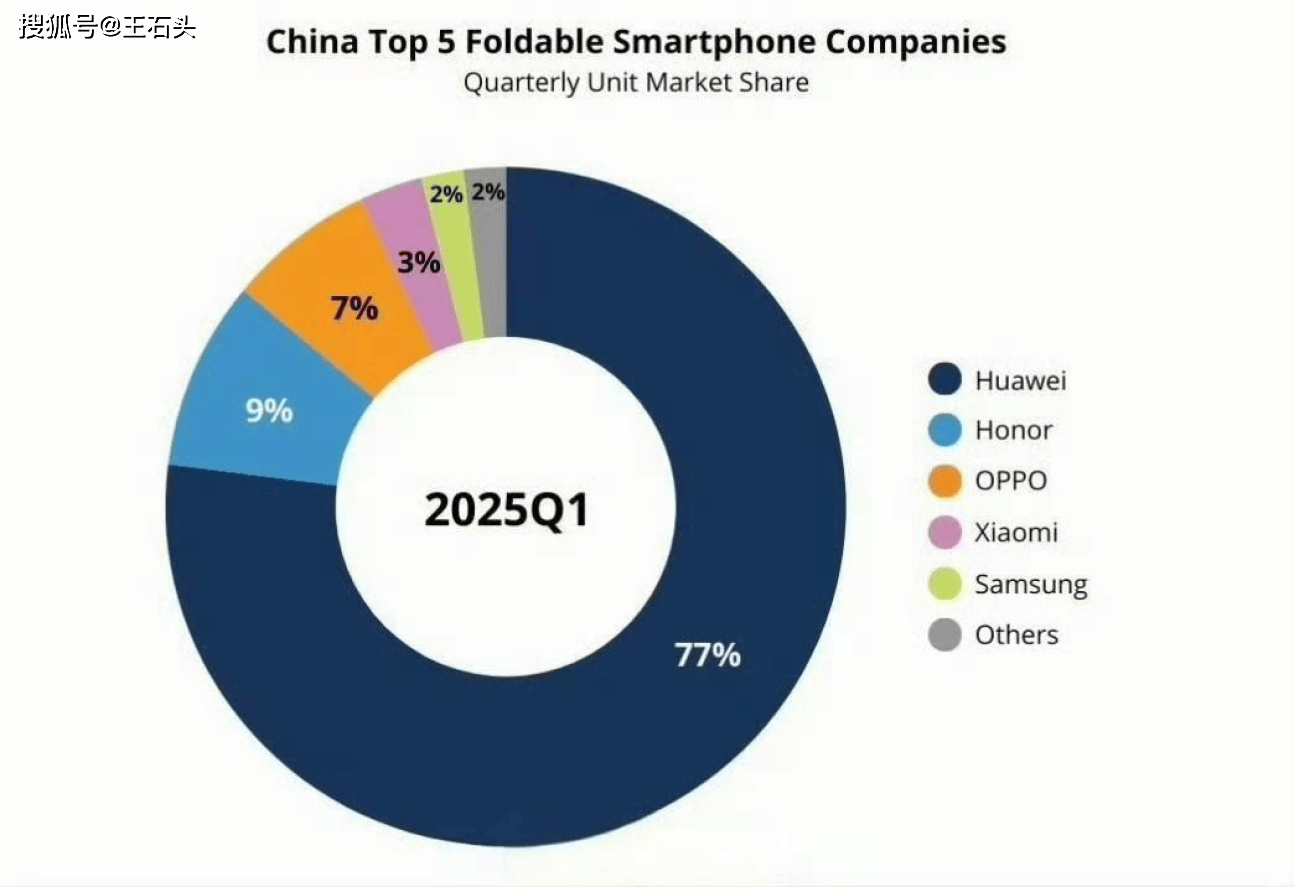 华为在折叠屏手机市场的地位确实不可动摇,今年一季度以77%的市场份额遥遥领先于竞争对手。