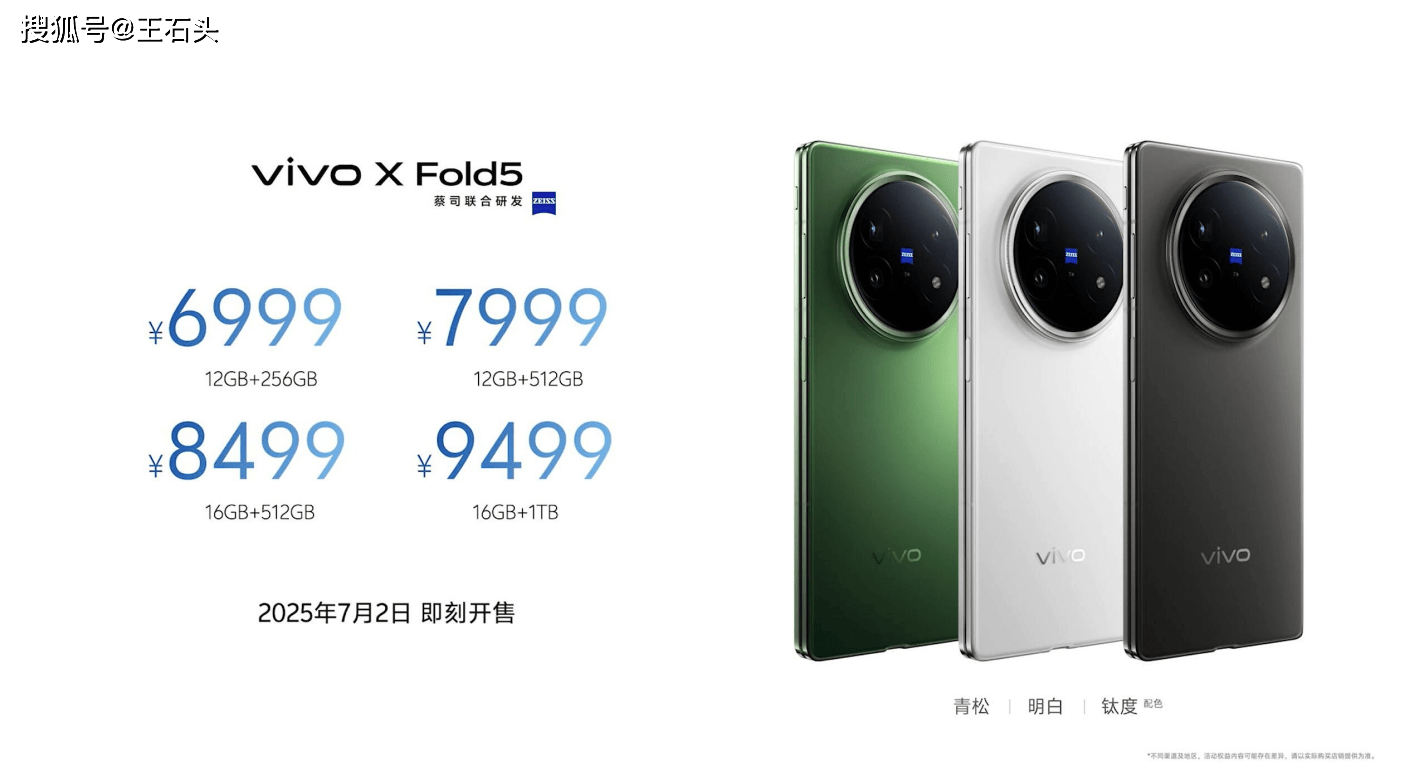 6月25日,vivo发布新一代折叠屏手机vivo X Fold5,共有四个版本,12GB+256GB售价6999元;12GB+512GB售价7999元;16GB+512GB售价8499元;16GB+1TB售价9499元。