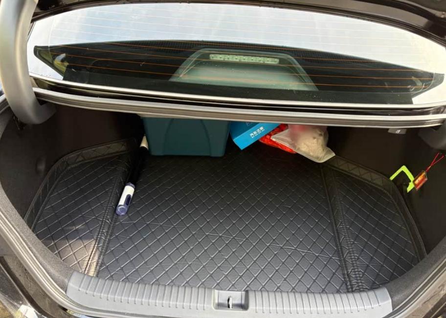 车内的后排空间特别宽敞,三个壮汉并排坐不挤,后备箱是570L,车主还从来没装满过。
