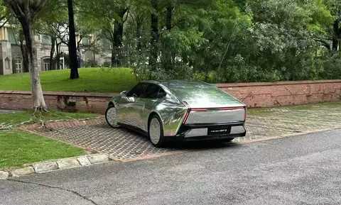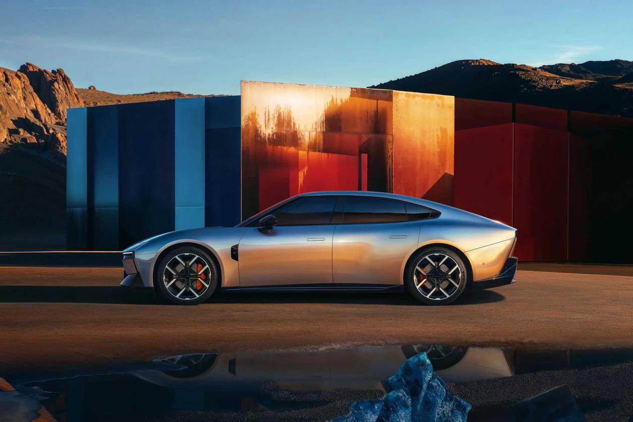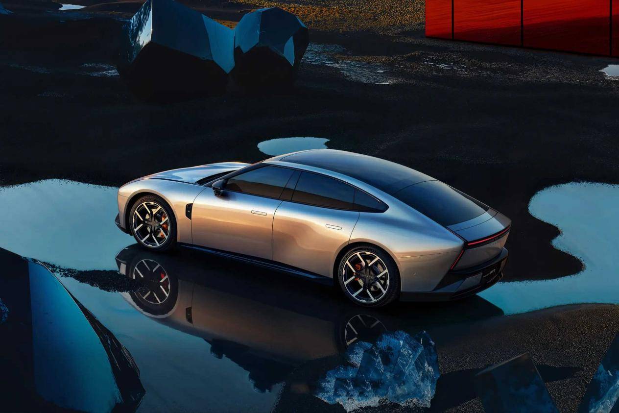 侧身带黄色卡钳的轮毂,静态视觉效果显得很时尚,不但美观,还降低了风阻。而前翼子板处有黑色装饰件,两边前翼门和后车门都配备了隐藏式车门拉手,而A、B、C柱的黑色处理,也让车顶呈现出半悬浮效果,A柱旁边是黑色的外后视镜,而弧形顶线从前顶一直延伸到车尾,侧身的精心搭配拉升了整体颜值的高度。