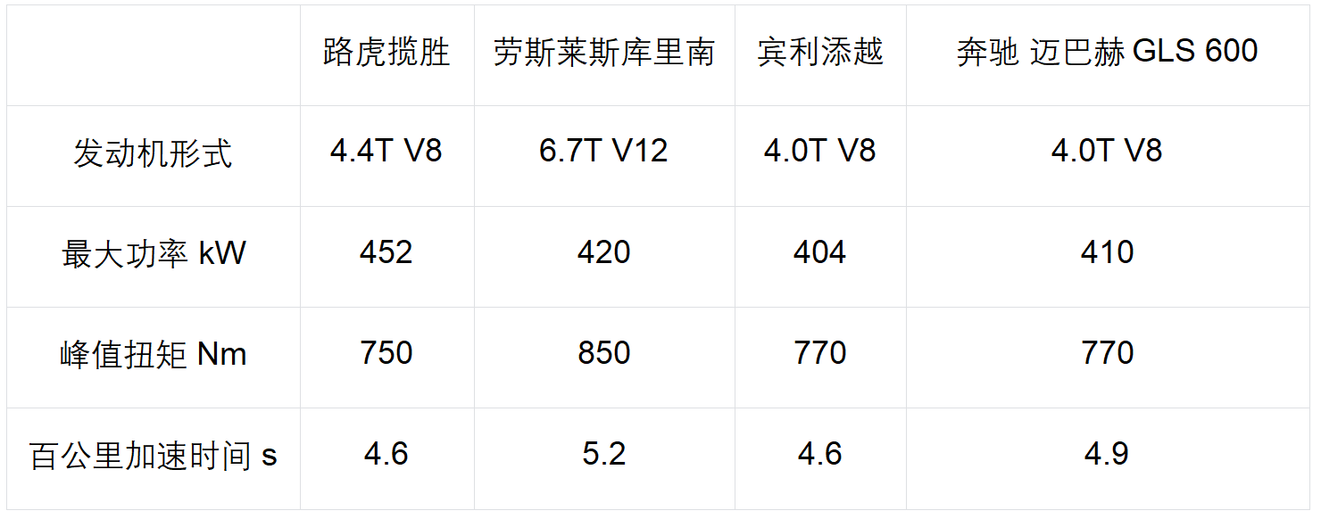 我们先来复习一下我们熟悉吗各大豪华品牌旗舰SUV的动力参数