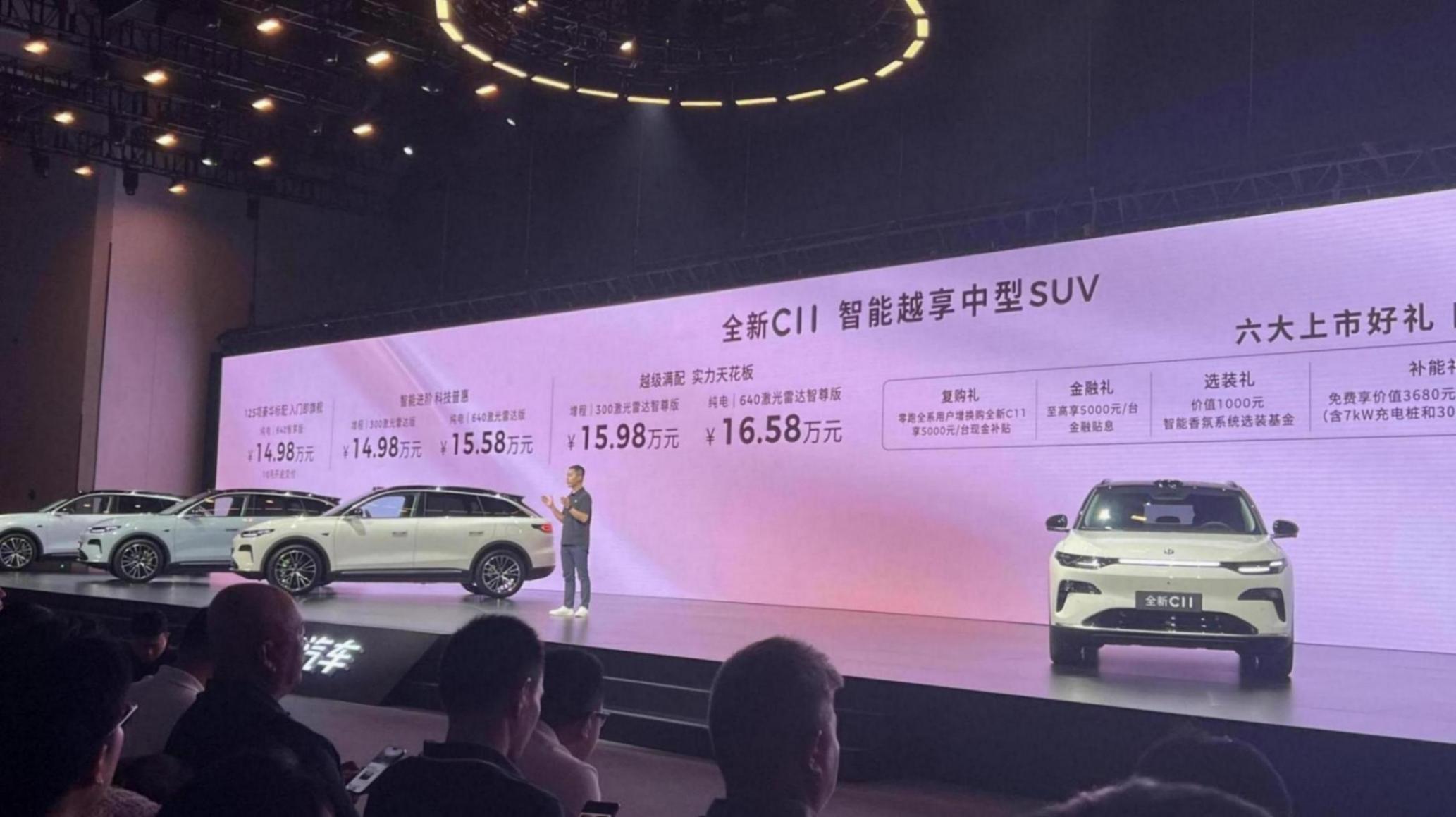 零跑全新C11共推出涵盖纯电和增程两种动力形式共5款车型,售价区间为14.98万至16.58万元,起售价格与老款车型指导价格相当,顶配车型指导价下调了约4万元。