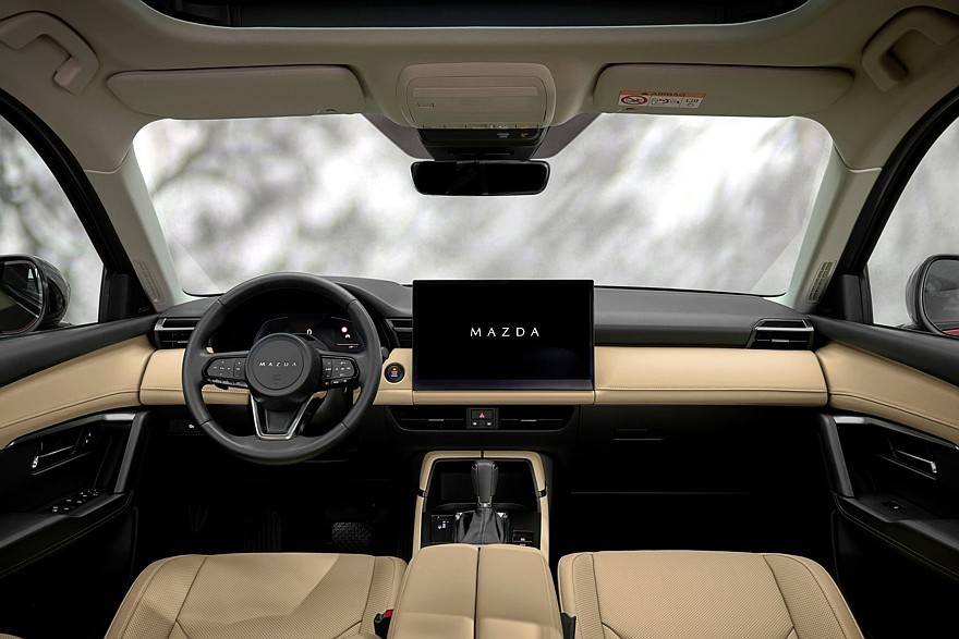 内饰方面,全新CX-5的变化同样令人耳目一新,采用极简的设计风格,双色内饰带了更年轻活力的座舱氛围。中控台配备内嵌式全液晶仪表盘和一块15.6英寸的悬浮式触控大屏。不过,在当前汽车设计圈开始反思过度触控化、物理按键逐渐回归的背景下,全新CX-5却反其道而行,大幅减少了物理按键数量。这种设计选择可能会引发一些争议,但消费者是否会买账,还需要市场来验证。辅助驾驶方面,全新CX-5也得到提升,具备车道保持、盲区监测、预碰撞预警等功能。