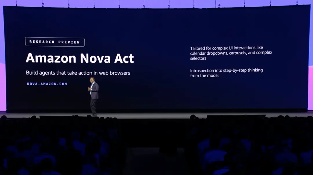 针对AI Agent许多功能过分依赖API的问题,亚马逊云科技还推出了Amazon Nova Act来打破这一局限——
