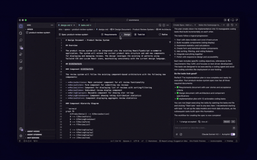 以及面向开发者,诸如Kiro这样的AI编程应用,更是重新规范了AI Agent在编程任务中的流程,目标依旧是能够保障“生产级”。