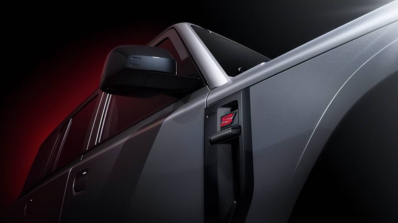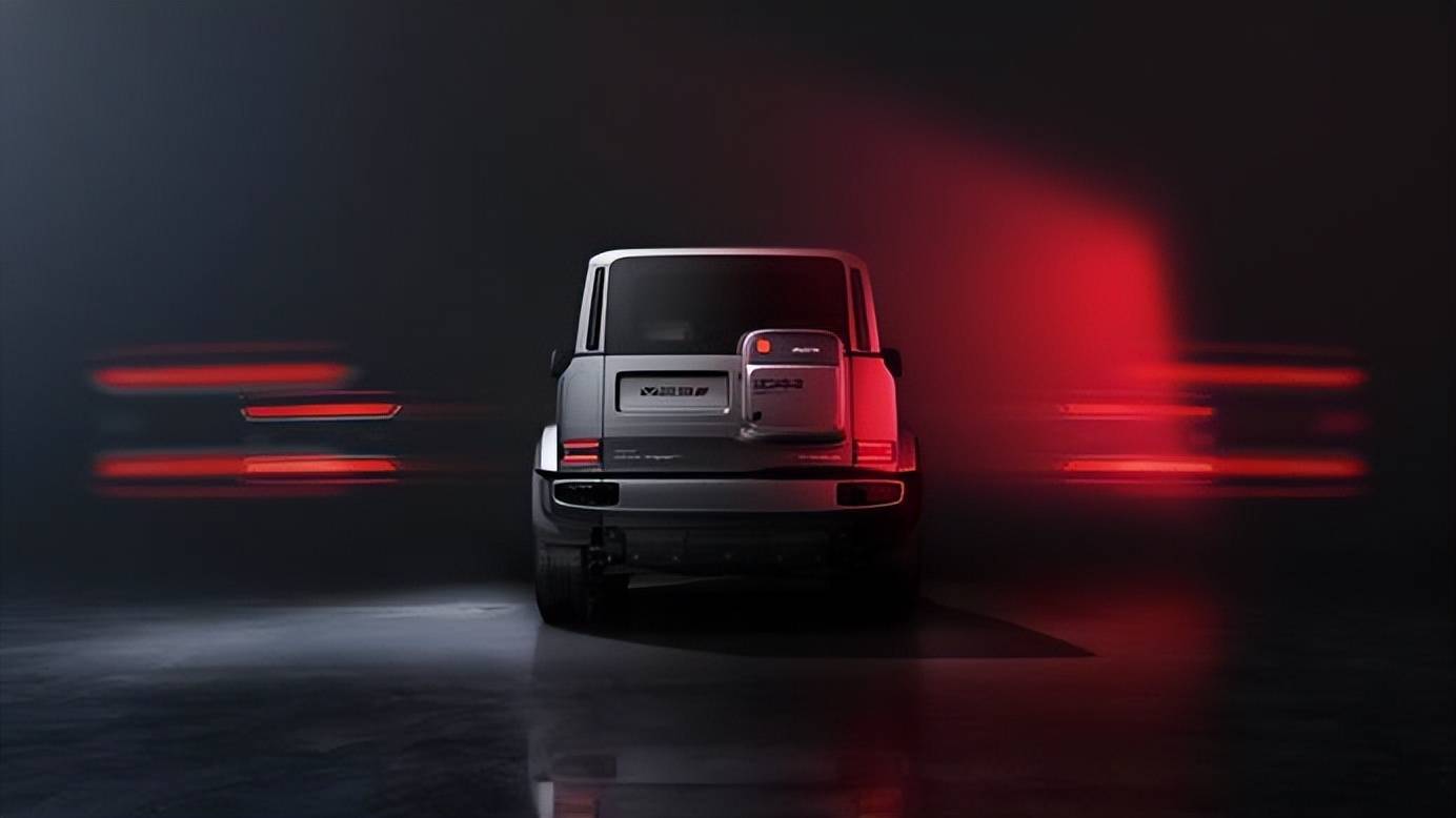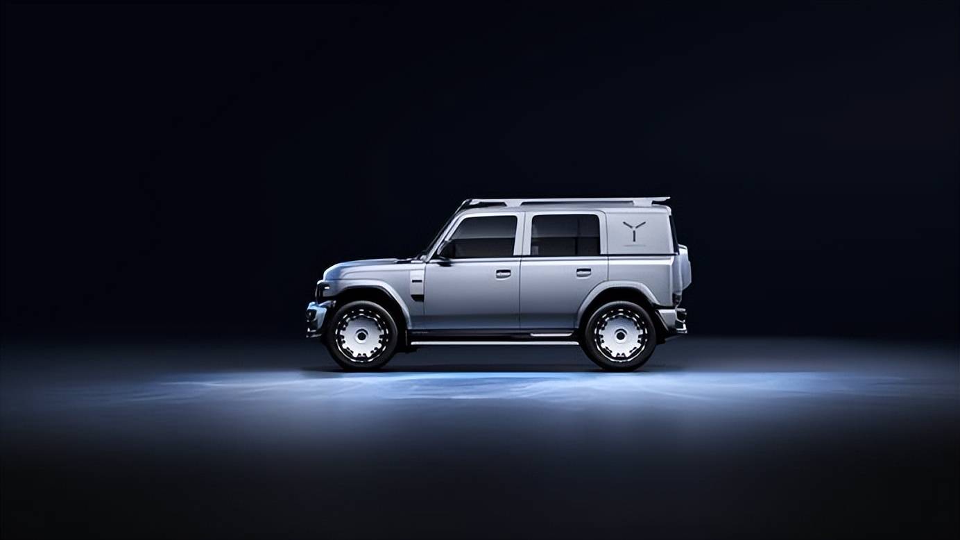 车身侧面以平直线条为主,悬浮式车顶与隐藏式门把手降低风阻,21英寸亮面封闭式“大饼”轮辋搭配宽体轮眉,营造出厚重动感的姿态。车顶LED射灯组如同机甲的“眼瞳”,可随时刺破夜色;车侧踏板与模块化行李架则兼顾实用性,支持加装射灯支架、金属网架等扩展设备。车尾“小书包”式备胎罩与熏黑横向尾灯形成反差,专属拉花与优化后的后包围呼应车头设计,每一处细节都在宣告:这是属于未来越野的审美革命。