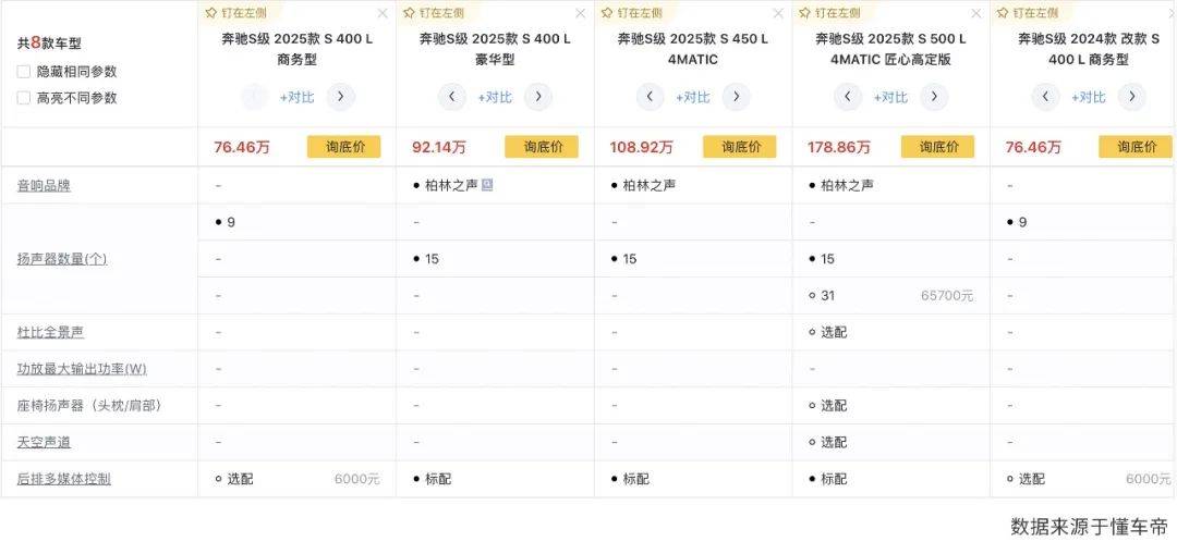 除了数量差异,品牌升级是选装音响的另一大核心。