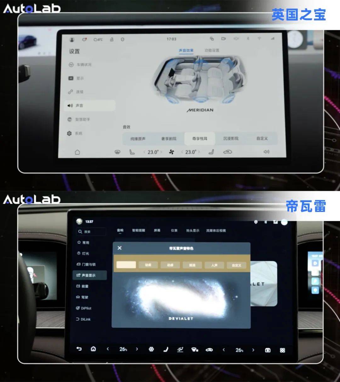 然而车内空间狭小且充满不规则反射面,发动机噪音、风噪等干扰持续存在,因此扬声器数量、布局和调音技术对听感的影响远大于家庭音响。