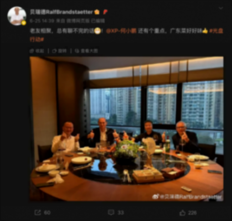 截至目前,双方合作仍在进一步加深。不久前,大众汽车集团(中国)掌门人贝瑞德在微博晒出与何小鹏在广州聚餐的合照,而何小鹏的回应则惹人遐思:“除了好菜,还有好酒,还有好事。”同期,外媒爆料称小鹏自研的图灵AI芯片将集成到大众明年在华新车。