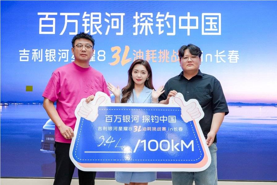 7月25日,“百万银河 探钓中国——吉利银河星耀8“3L油耗挑战”in长春圆满收官。媒体代表、星耀8品鉴官、吉利银河星网北区营销经理三人驾驶星耀8从延吉出发开往长春方向的跨城实测中,达成百公里3.4L的油耗成绩!活动通过区域官方抖音进行了直播,真实的展现了星耀8的硬核实力!