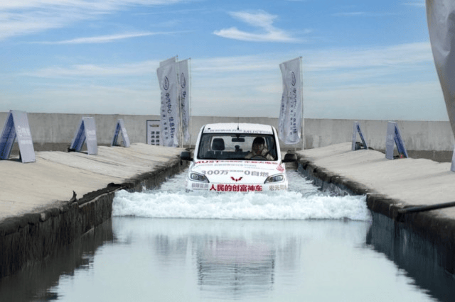 高温干燥的环境连续沙地爬坡,基于用户实际场景进行整车涉水叠加电池刮底的严苛路面工况,对新能源商用车的动力及电池系统安全性提出了巨大的挑战,五菱宏光纯电版分别通过36%、42%的非铺装土路坡道,随后进行涉水电池刮底的叠加实验,以10km/h车速通过设有球形壁障的300mm涉水池,球形壁障顶点高于电池包前端底面30mm,测试通过后电池电芯电压温度无异常,绝缘正常。