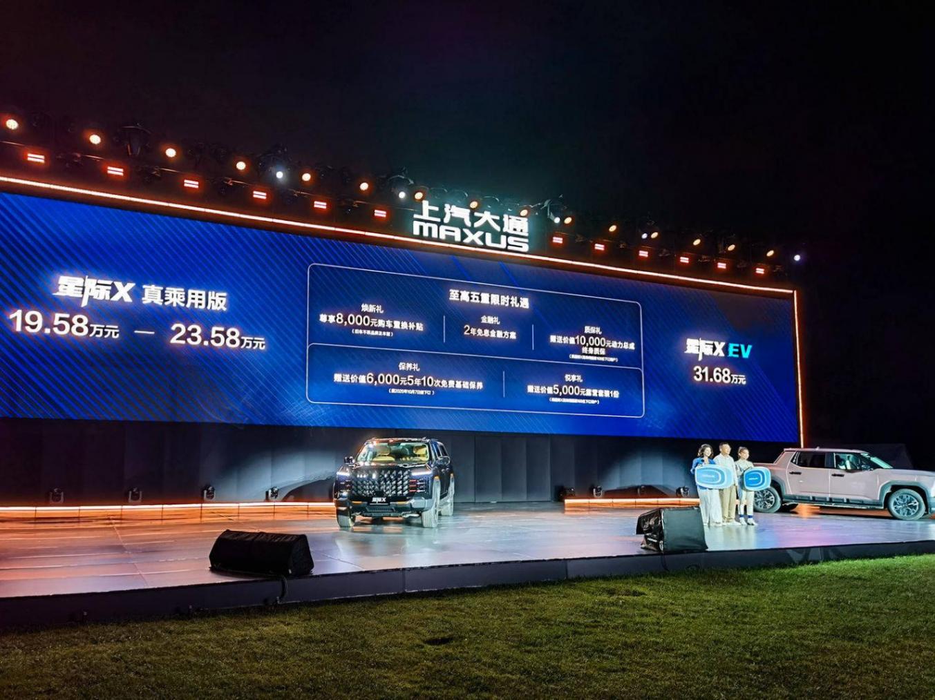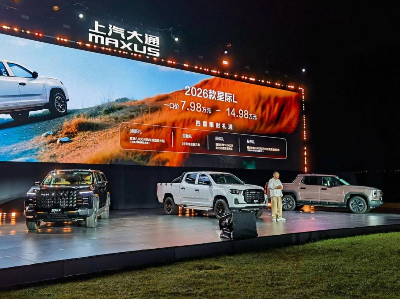 2025年8月7日,上汽大通MAXUS“星际皮卡之夜”在云南昆明举行。活动现场,上汽大通MAXUS专为皮卡打造的“星栈平台”全球首次发布,2026款星际皮卡家族全国上市,涵盖星际X真乘用版、星际X EV和2026款星际L三款车型。其中星际X真乘用版售价19.58万元起;星际X EV售价31.68万元;2026款星际L一口价7.98万元-14.98万元。