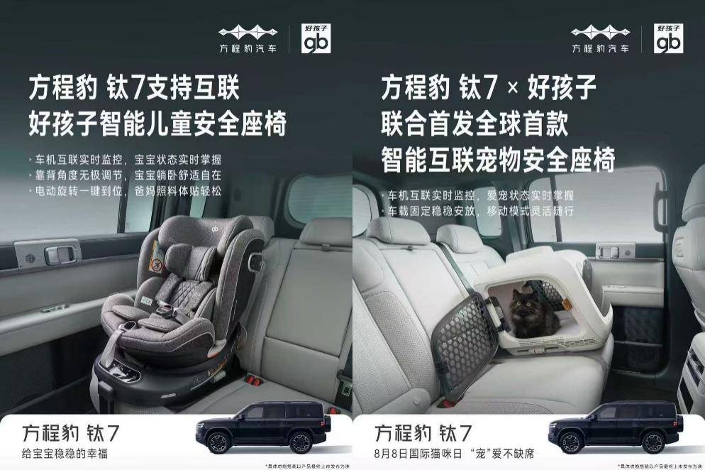 另外,钛7还首发首搭了比亚迪新一代智慧生态,最近还官宣了和gb好孩子联合首发的智能儿童安全座椅、全球首款智能互联宠物安全座椅,这让座舱体验又上了一个新台阶。