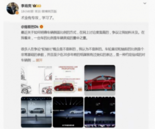 在引发广泛关注的初始发文中,他还调侃跟风车企 “就像考试打小抄,把人家错误答案给抄上去了”。