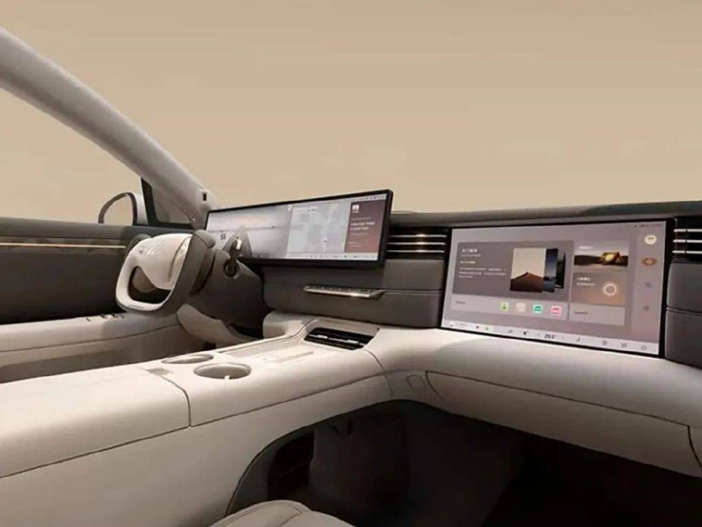 内饰方面,新车会提供全新深/浅大地灰主题内饰,采用 27.1 英寸 5K MiniLED 中控双联屏 +15.6 英寸 3K MiniLED 副驾娱乐屏,搭载 AIOS1.0 交互系统,空调出风口也很好地与整个中控台相融合,更具层次感。同时,车辆还在中央扶手区域配备了无线充电面板和水杯架,下方是镂空的储物空间。此外,新车会提供半辐和全辐方向盘造型供选择,并在左右两侧配备滑动旋钮。