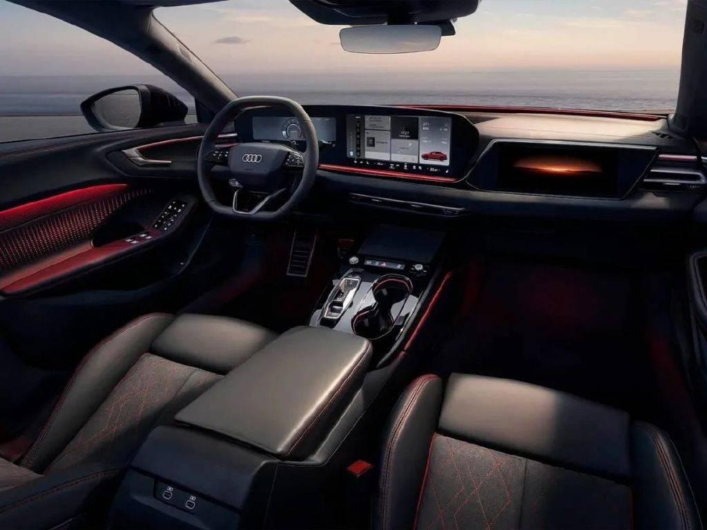 进入车内,新车配备奥迪全新一代座舱设计布局,采用悬浮式环抱中控以及雾面磨砂设计,并集成左右门把手形成一个扁窄的六边形造型,在视觉上拓展了横向空间。车辆还将采用由11.9英寸液晶仪表与14.5英寸中控屏共同组成的曲面一体屏。此外,副驾将配备10.9英寸娱乐屏,轮廓采用平行四边形设计,内嵌于中控台中,造型与整体座舱设计更为契合。