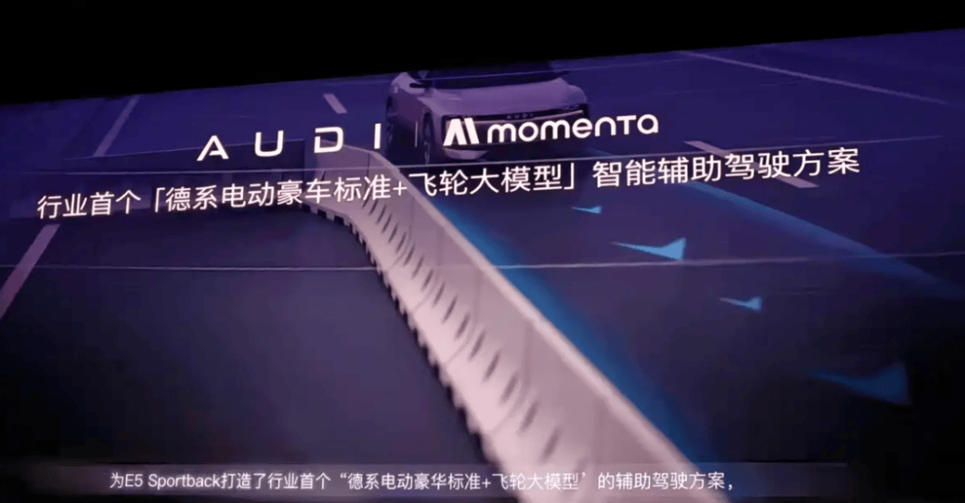 智能驾驶能力上,奥迪E5 Sportback配备了27个感知硬件,包括1个激光雷达、3个毫米波雷达、12个超声波雷达和11个摄像头。采用Momenta EBM端到端大模型辅助驾驶方案,官方称可应对城市道路、高速公路等多种场景。