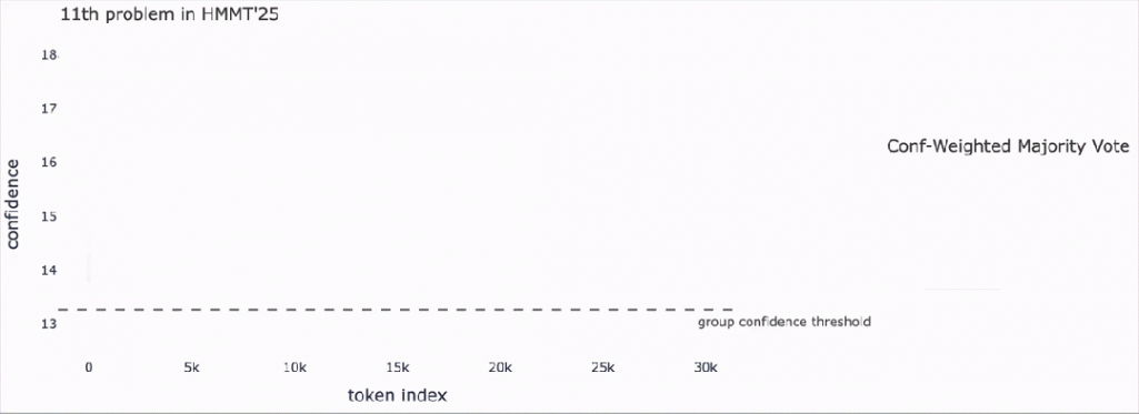 以DeepConf在HMMT 25(哈佛–麻省理工数学竞赛)的第11道题目上的推理过程为例。