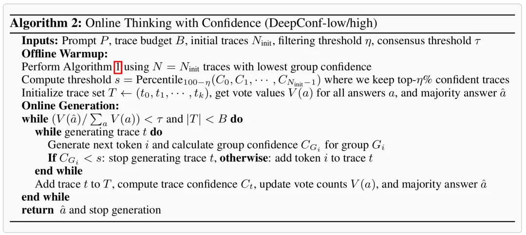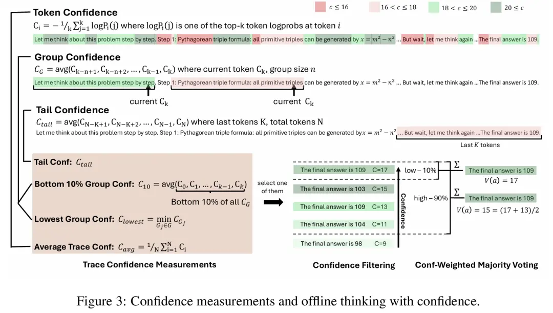 在线思考:在模型一步步生成推理的过程中,就实时参考置信度。如果发现某条思路不靠谱,可以及时停掉,避免浪费算力。这样能边走边筛选,提升效率甚至精度。