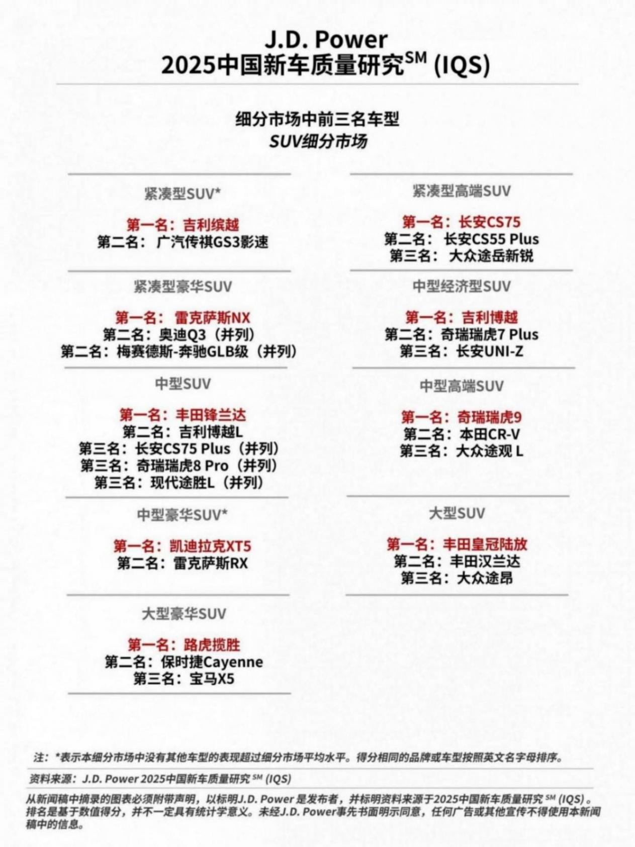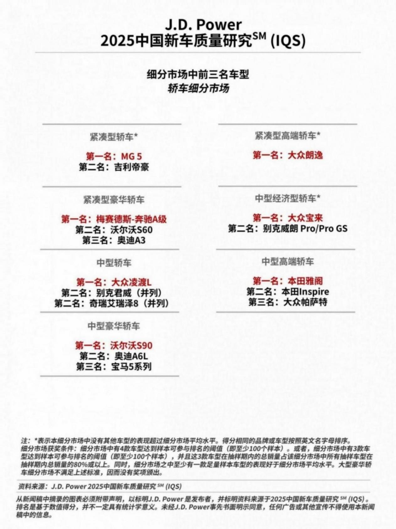 车型层面,今年研究中共有18个细分市场的18款车型摘得奖项。