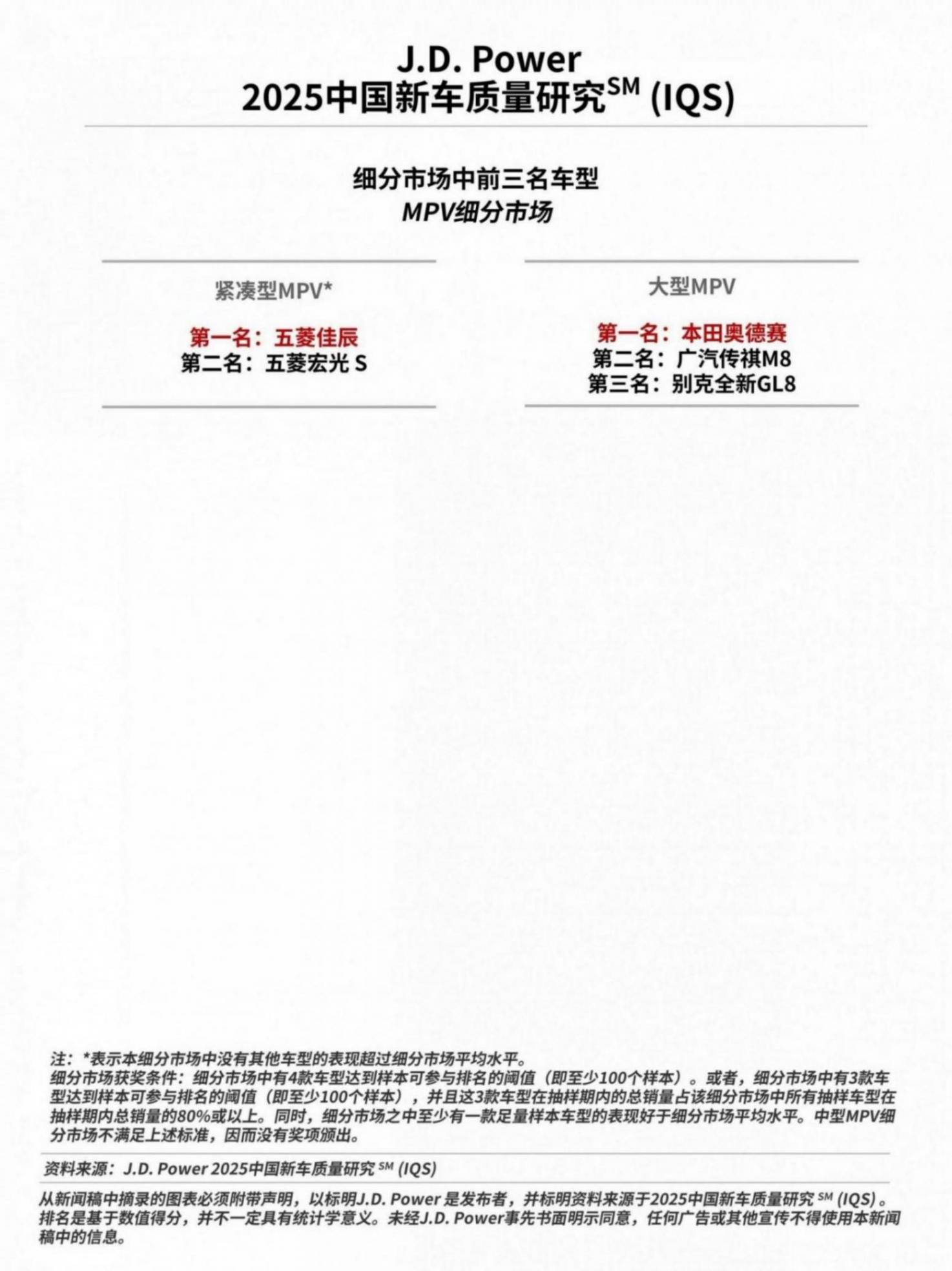 广汽本田(208个PP100)排名主流品牌新车质量第一。东风本田(209个PP100)排名第二,广汽丰田(219个PP100)和上汽大众(219个PP100)并列第三。