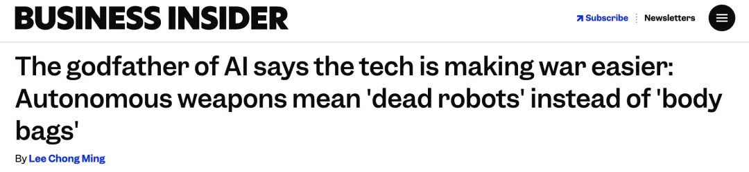 近日,Hinton再次发出警告——AI正在改变战争方式,让战争变得更容易: