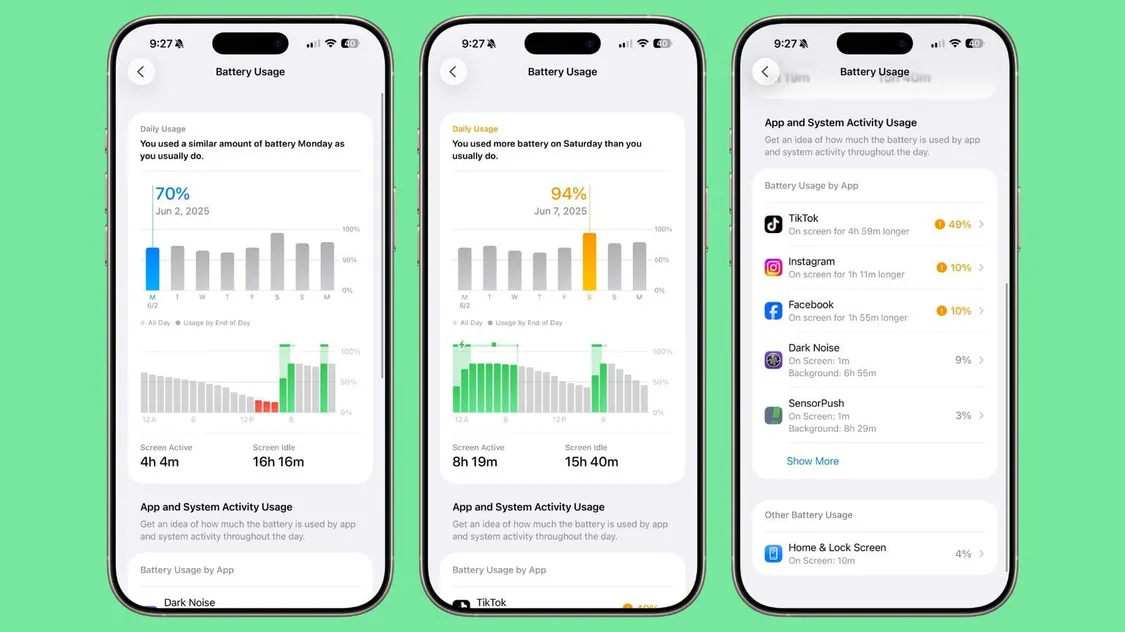 应用耗电详情页现在会明确告知电量消耗的具体原因,比如应用后台运行时间过长、屏幕开启过久或通知发送过多。高耗电应用会以橙色突出显示,方便用户快速识别。