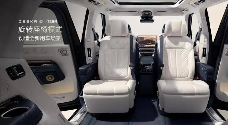至于理想L9,其最大卖点便是舒适,但从空间布局和舒适性,极氪9X要更胜一筹,比如第二排配备的双零重力座椅,不仅拥有加热、通风、按摩及腿部支撑多项功能,还支持 180° 旋转,为乘客提供了极致的舒适体验,这是理想L9所不具备的。