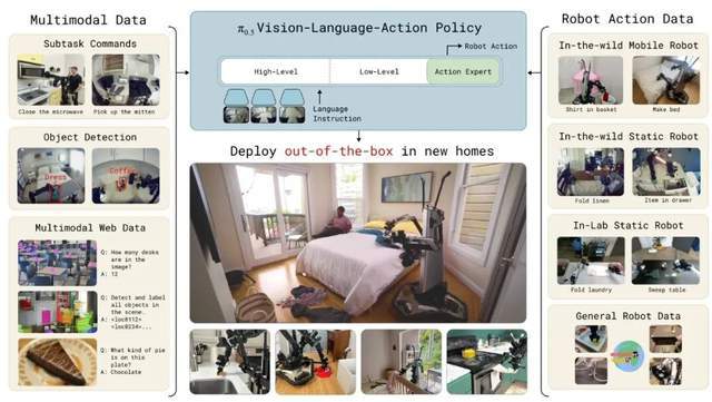 柯丽一鸣:我觉得“同”说的是,很多原来做在不同形态机型上的人,会用不同方法,现在大家都非常的开放,会说我们要不要试一试视觉语言的这种大模型,你说的这种上半身、下半身的形态,其实 π₀.₅做的就是这个事。
