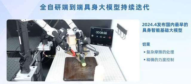 我们坚信必须得有一个强大的、无所不能的基础模型,才有可能把这基础模型用到各种垂直领域,让它得到更加高效的部署,但这个过程不能反过来,必须得有大而通用的基础,才会有小而精的发展。在实现的路径上,其实国内更像是上下结合,双轨并行,一方面尽可能多的去考虑场景,尤其是考虑这种通用泛化的场景可能带给我们什么,同时又去迭代我们自己的通用基础模型的能力,才能更快地让机器人在现实世界获得更好的反馈,帮助大家实现商业闭环以及开始形成数据飞轮。