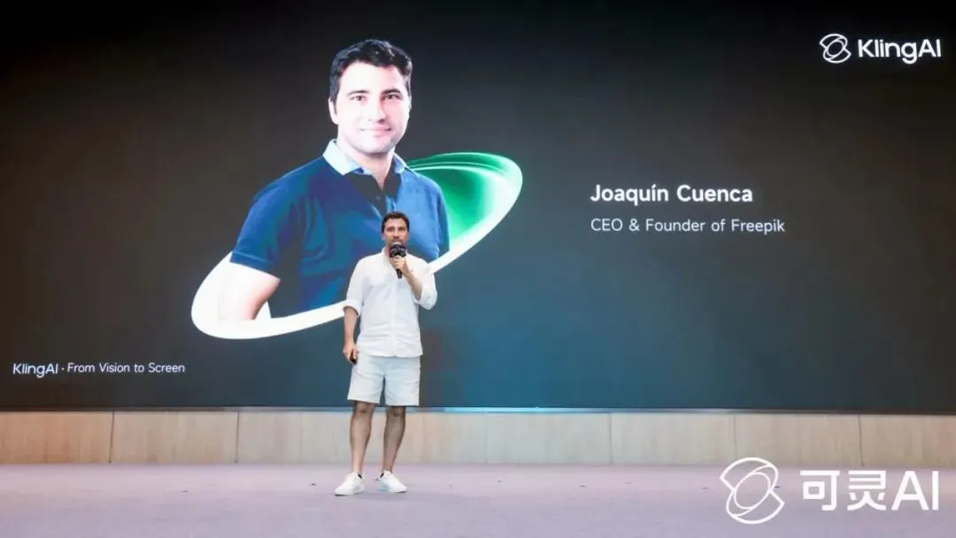 全球知名创意素材平台Freepik的CEO Joaquín Cuenca Abela在会上表示,“我们接入了超过10个不同的视频生成大模型,用户选择使用可灵AI生成的视频数量,超过其他模型加起来的总和。”Joaquín表示,这都是因为可灵在技术上有非常卓越的表现,可灵AI的优势主要体现在三个方面,视频生成速度快、提示词遵循度高以及镜头运动非常出色,“依托和可灵AI的合作,我们能够更好地服务包含奢侈品、广告营销等多个行业的用户。”