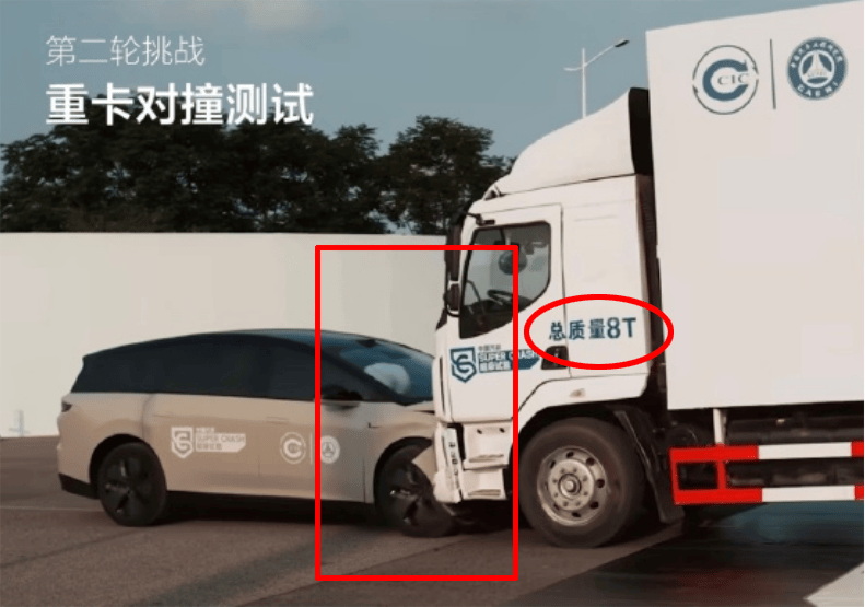 在真实道路场景中,出现乘用车(小车)和卡车100%正面对撞的概率是极低的;大部分都是正面偏置碰撞、小车追尾卡车或卡车追尾小车,这样的测试才更具看点。而且在真实的道路场景中一定存在卡车司机“让速不让道”的驾驶理念,并且车辆运载货物类型会对卡车司机的制动强度判断、制动强度意图产生相当程度的影响,每一个判断的细微差异都会决定小车的损坏程度。